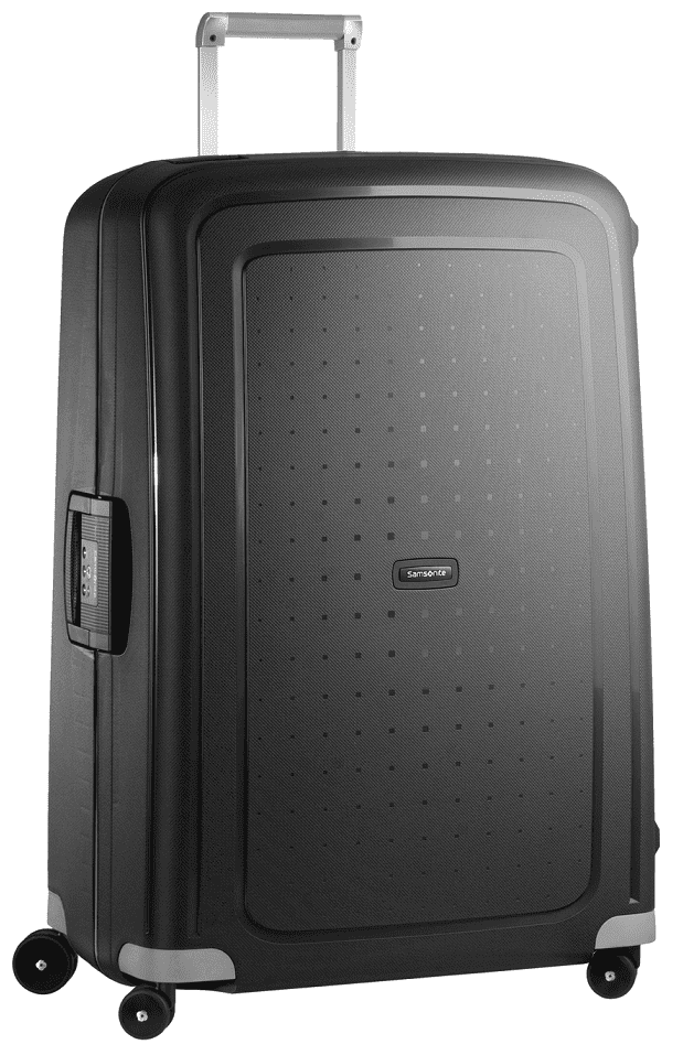 מזוודה קשיחה גדולה בגובה81 ס”מ (31 אינצ’) של חברת סמסונייט מדגם S’Cure – עשויה פוליפרופילן , על 4 גלגלי סיליקון כפולים, עם 3 קליפסים (ללא רוכסנים) וגומי אטימה למניעת כניסה של נוזלים, במגוון צבעים וכולל מנעול TSA