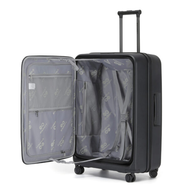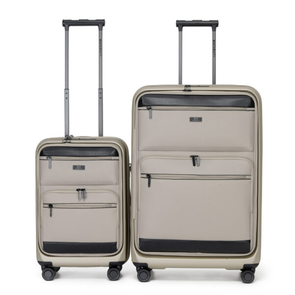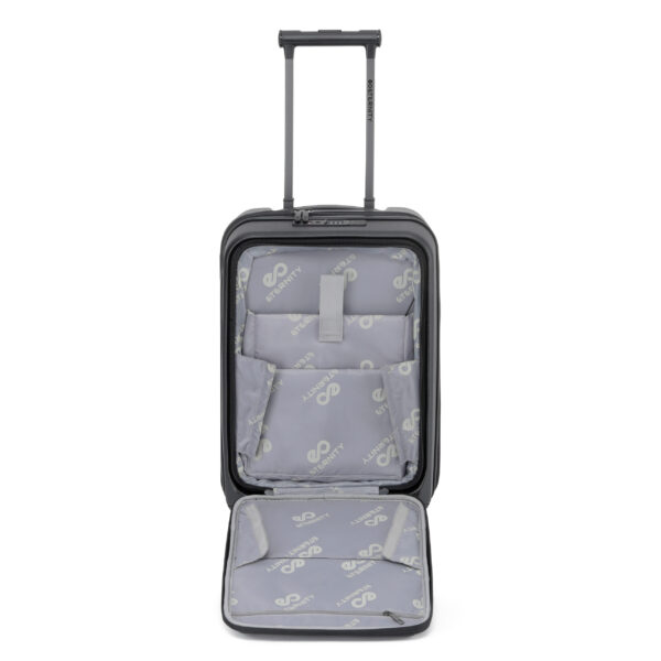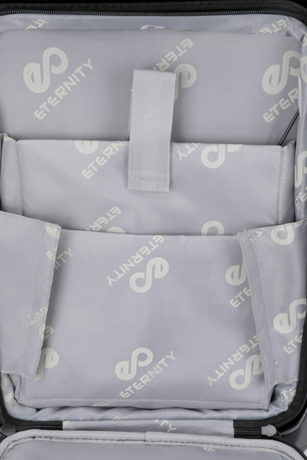 מזוודות מתוצרת ETERNITY שעברו בדיקת איכות קפדנית. מזוודות קשיחות/רכות וייחודיות, בעלות שיטת אריזה כמו במזוודות רכות. טרול עלייה למטוס עם כיס קדמי למחשב. עשויה מחומר פולי קרבונט, חומר חזק ואיכותי וחזית עשויה מניילון בליסטי/פוליאסטר חזק ועמיד. ידית אלומיניום טלסקופית איכותית בעלת 2 שלבים להתאמה אישית ואזור אחיזה ארגונומי להבטחת נוחות מרבית. שתי ידיות נשיאה – עליונה וצידית. רוכסן פנימי שיוצר חלוקה מלאה של המזוודה בפנים. תאים פנימיים חכמים עם אורגנייזר. 4 גלגלי סיליקון כפולים ואיכותיים להפחתת עומס הגרירה בצורה משמעותית ונסיעה חלקה. רוכסן מיוחד להרחבת והגדלת נפח המזוודה . המזוודה מגיעה עם מנעול TSA לכל הגדלים. בטנה בצבע אפור ממותג, מצופה PU עם ריפוד. לזיהוי קל של התכולה. המזוודה תוכננה בקפידה, בעלת מראה יוקרתי ואיכותי. טרול עלייה למטוס בעל נפח גדול, עם תא קדמי למחשב ומסמכים. מזוודת עלייה למטוס כוללת חיבור USB וכבל למטען נייד. צבעים – אפור, שחור וכחול. אחריות – 36 חודשים במעבדת TROOPER.
