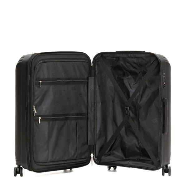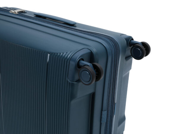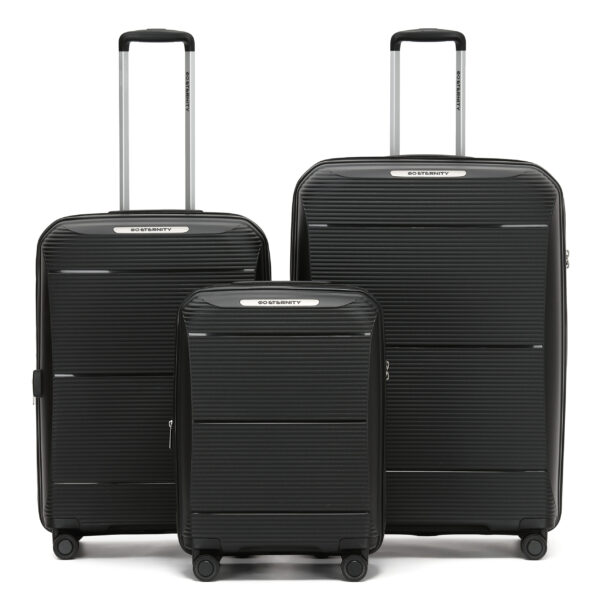 מזוודות מתוצרת ETERNITY שעברו בדיקת איכות קפדנית . עשויה מחומר PP פוליפרופילן חזק, קל ועמיד במיוחד. ידית אלומיניום טלסקופית איכותית בעלת 2 שלבים להתאמה אישית ואזור אחיזה ארגונומי להבטחת נוחות מרבית. 2 ידיות נשיאה – עליונה צידית ותחתונה. רוכסן פנימי שיוצר חלוקה מלאה של המזוודה בפנים. תאים פנימיים חכמים עם אורגנייזר. 4 גלגלי סיליקון כפולים ואיכותיים להפחתת עומס הגרירה בצורה משמעותית ונסיעה חלקה. רגליות צד. רוכסן מיוחד להרחבת והגדלת נפח המזוודה .המזוודה מגיעה עם מנעול TSA לכל הגדלים. בטנה בצבע שחור ממותג, מצופה PU עם ריפוד. לזיהוי קל של התכולה. המזוודה תוכננה בקפידה, בעלת מראה יוקרתי ואיכותי. אחריות – 36 חודשים במעבדת TROOPER.